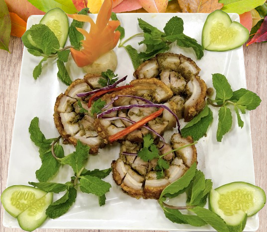 • Mã thực đơn: BA CHỈ HEO QUAY LÁ ỔI